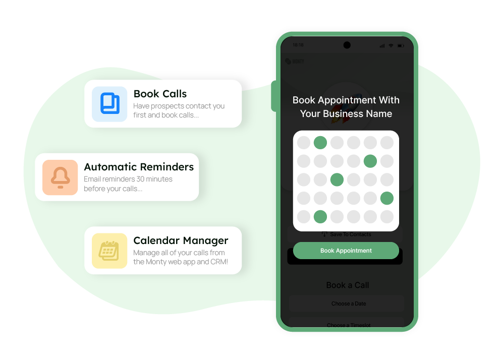 Easily manage and schedule meetings by allowing prospects to book appointments directly from your Monty Card, making your workflow smoother.
