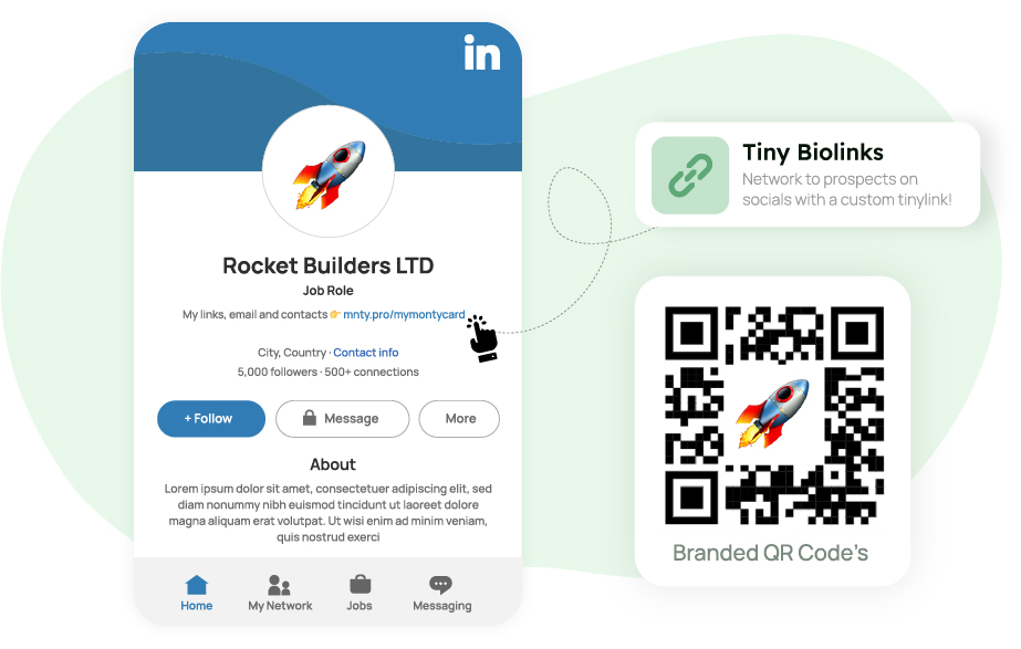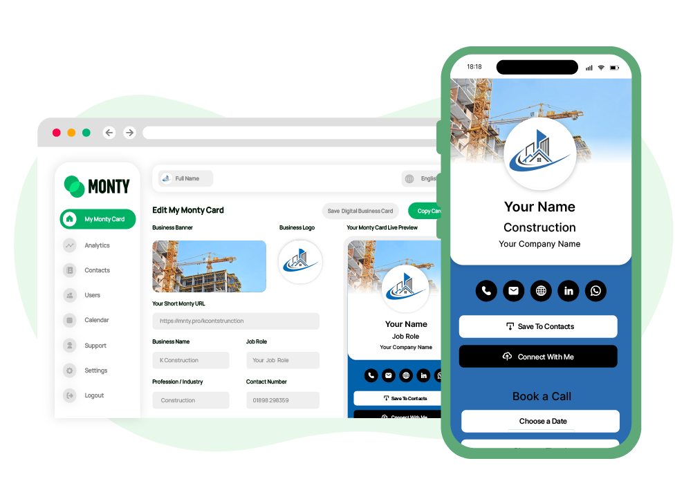 Organize and share essential links, such as project portfolios, safety certifications, or booking pages, all accessible through your Monty Card.