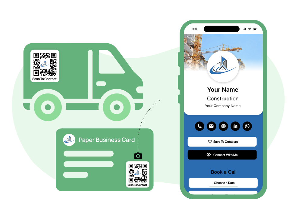 Equip your construction team with digital business cards, allowing them to represent your brand professionally and connect seamlessly with clients and partners.