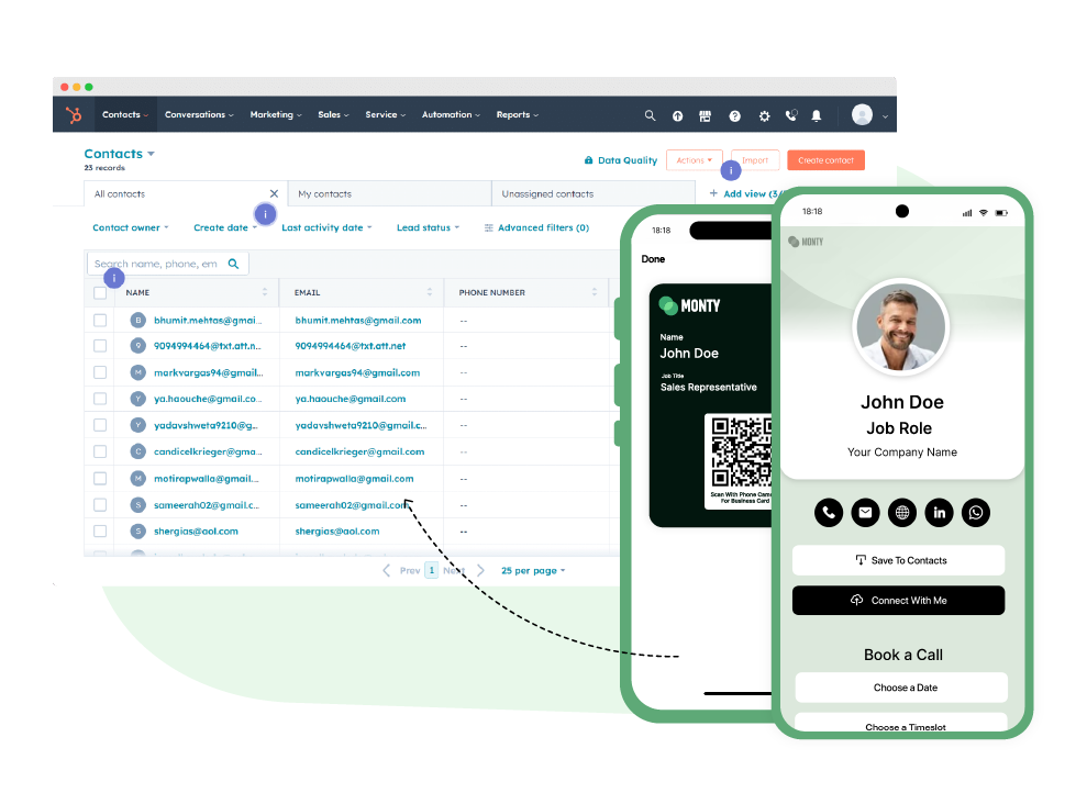 Monty works seamlessly with HubSpot, instantly transferring contact details from networking interactions into your HubSpot CRM, making lead nurturing and follow-ups simple and efficient.
