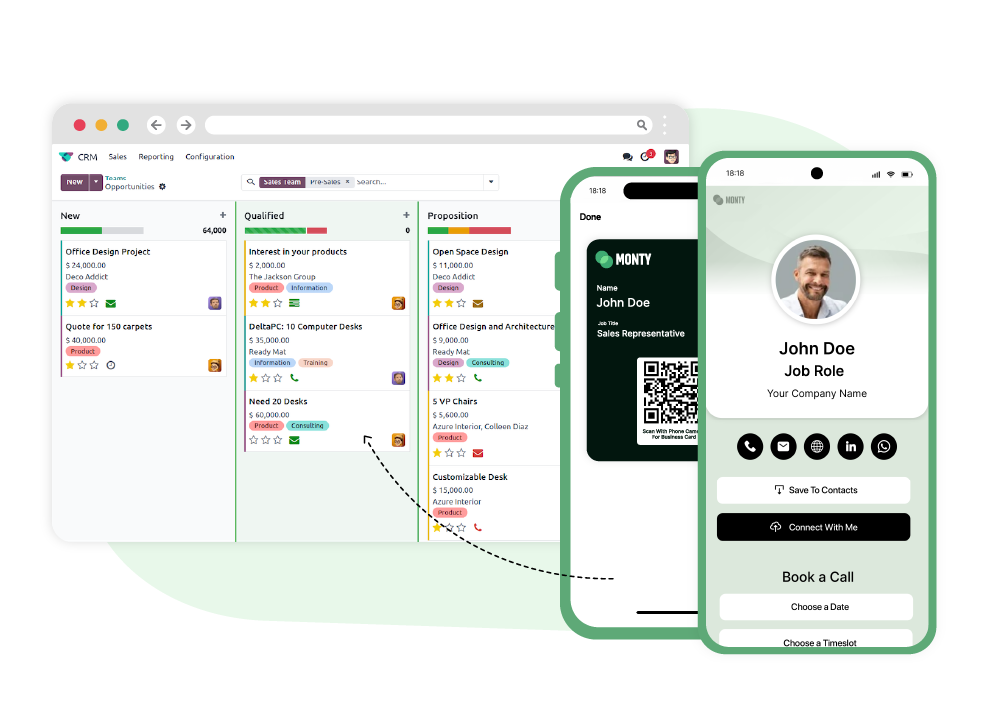 Monty Card integrates smoothly with Odoo, allowing you to capture contact details during networking events and have them flow directly into your Odoo CRM.