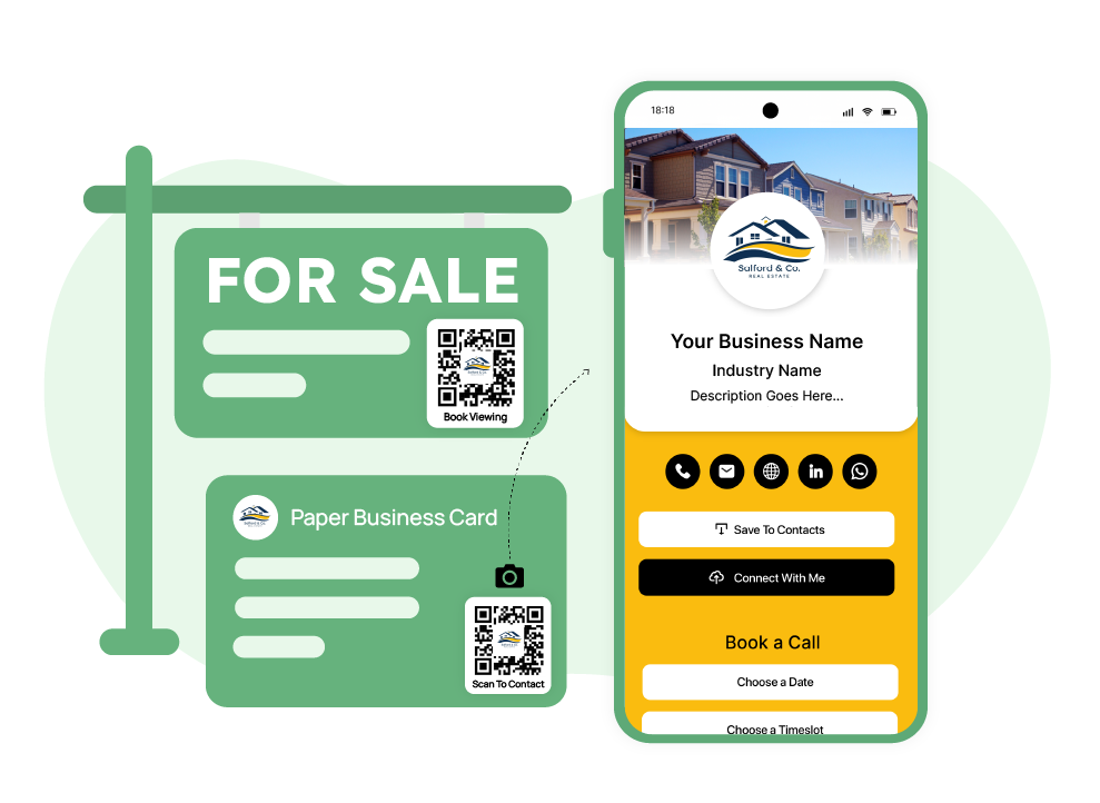 Enable real estate agents to share their contact information effortlessly, ensuring they are always ready to connect with clients, buyers, and sellers at open houses or showings.